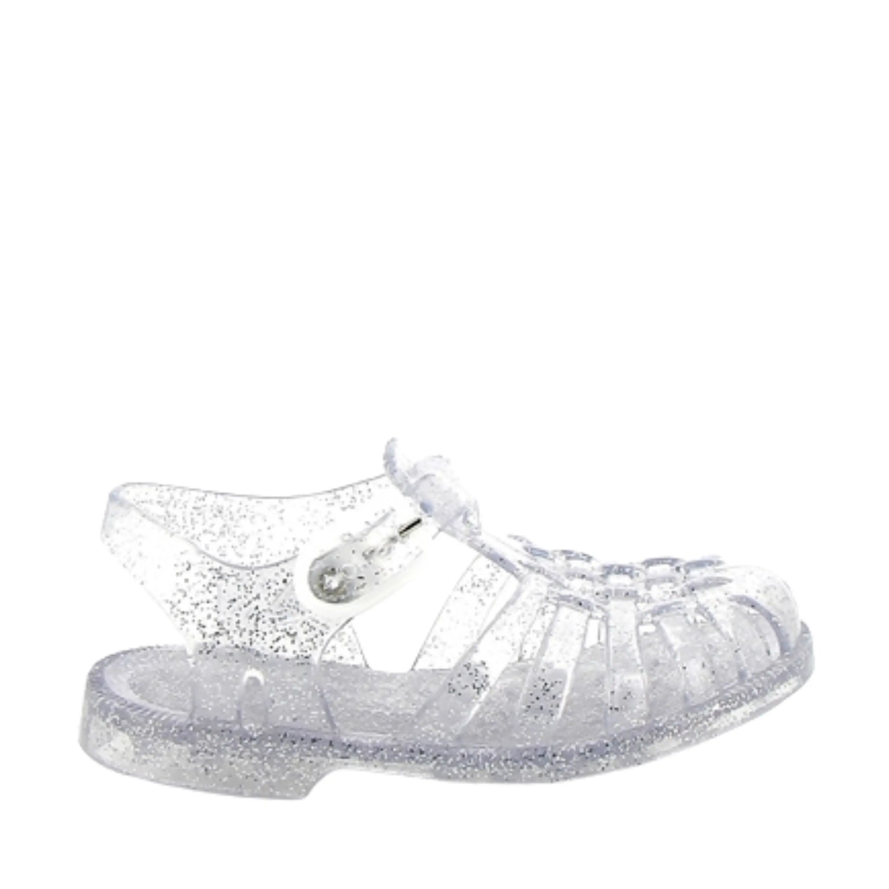 Les sandales de plage couleur Argent Pailleté Meduse pour enfants illuminent chaque moment de l’été ! Leur teinte argent scintillante reflète la lumière et ajoute une note ludique et féerique à toutes les tenues.