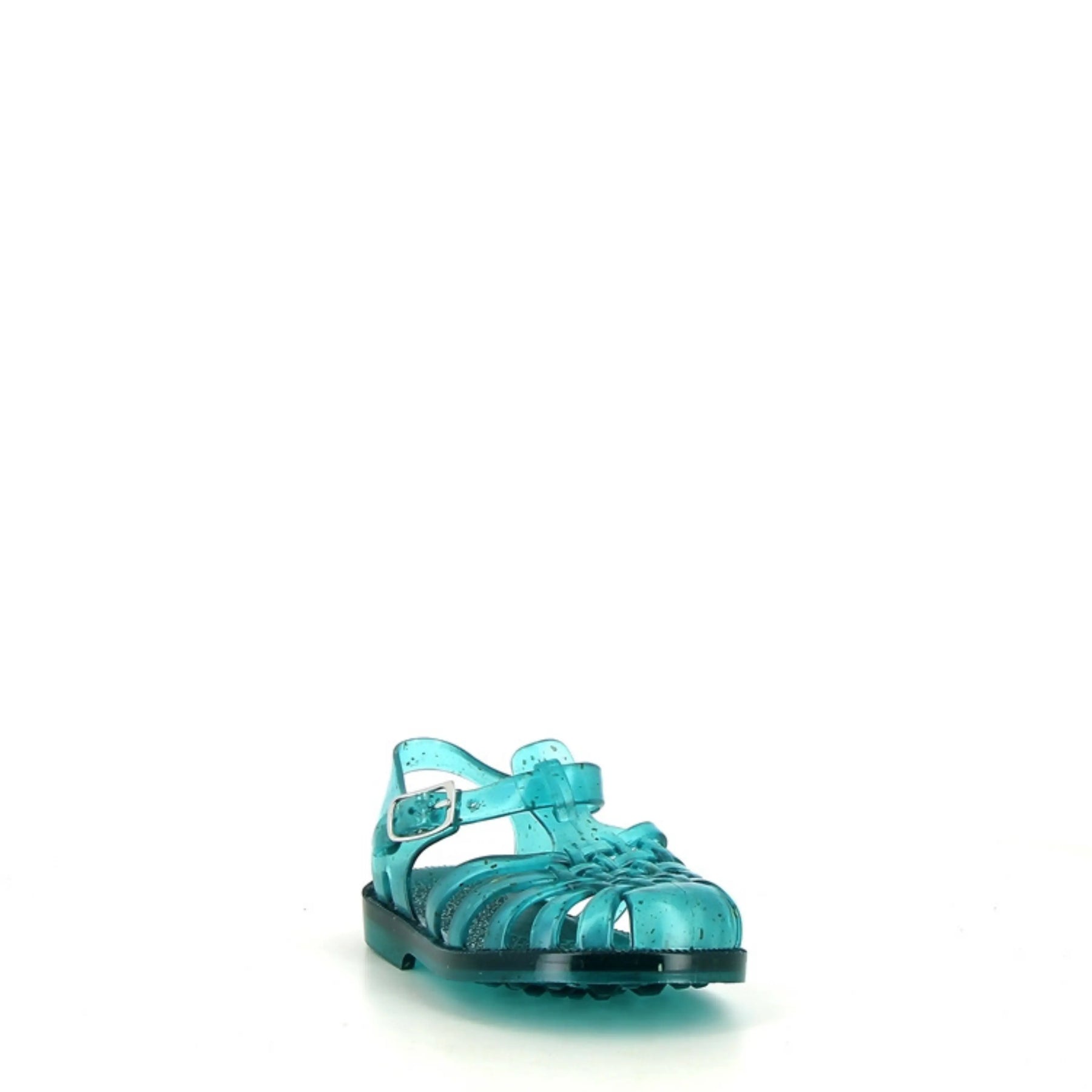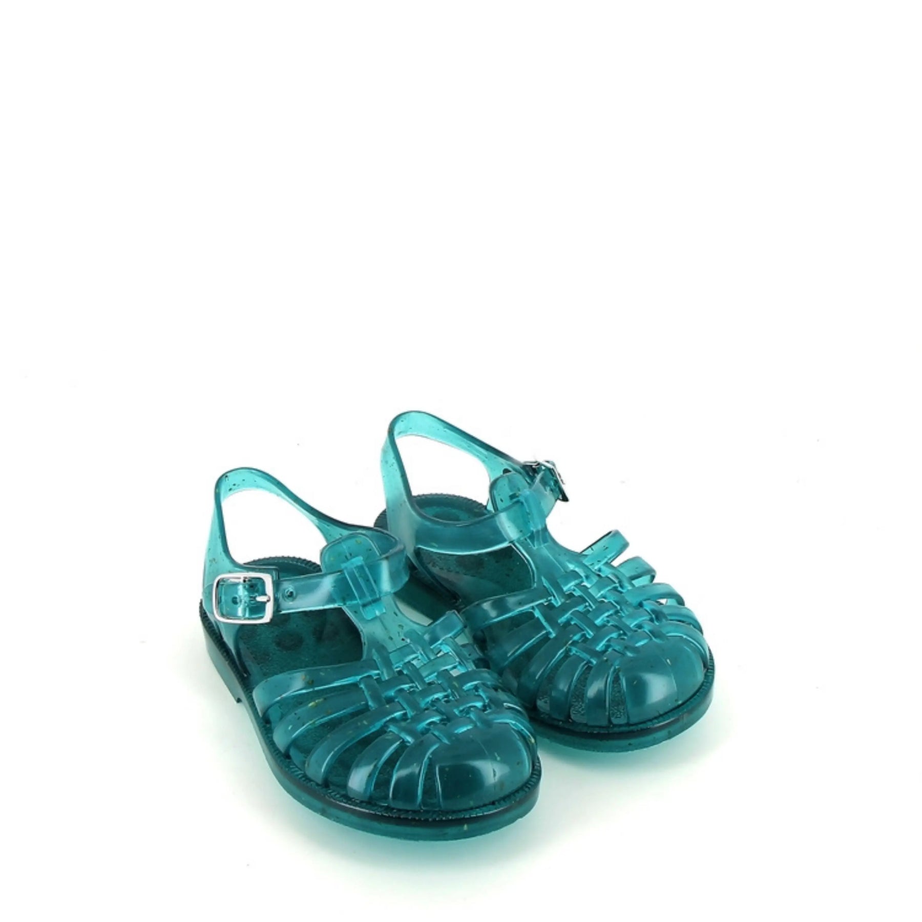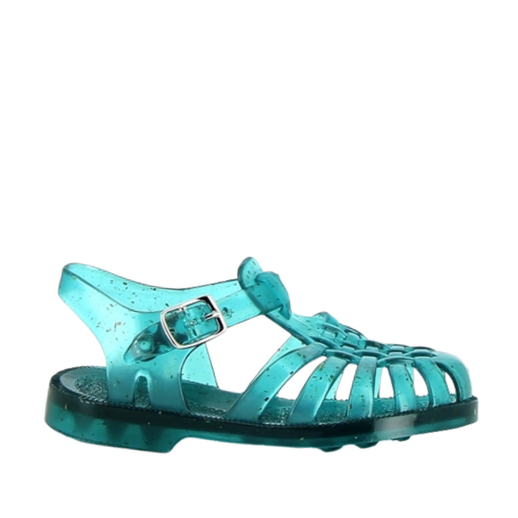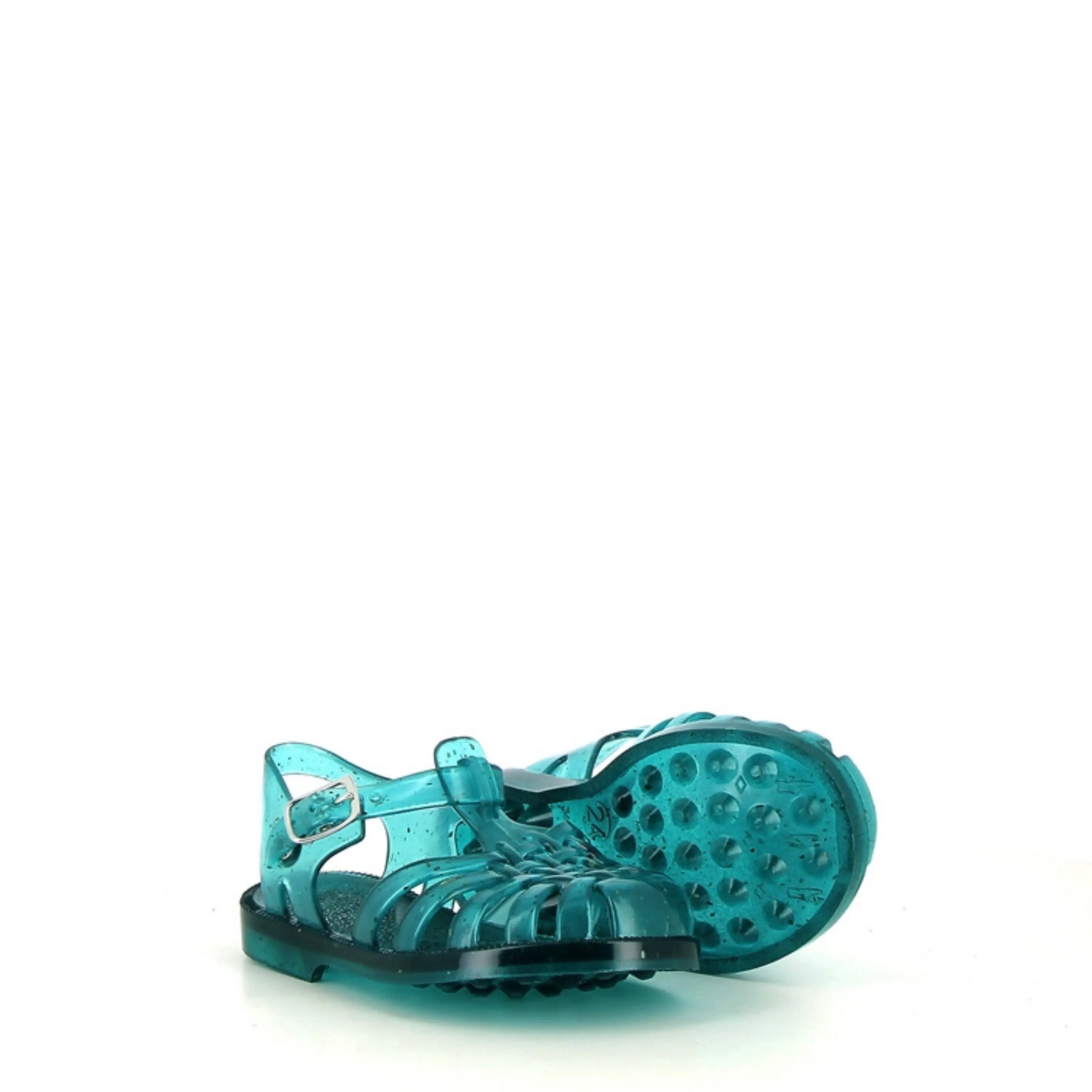 Ces sandales de plage pour enfants Meduse, fabriquées en plastique vert enrichi de chanvre, sont à la fois légères, souples et résistantes à l’eau.