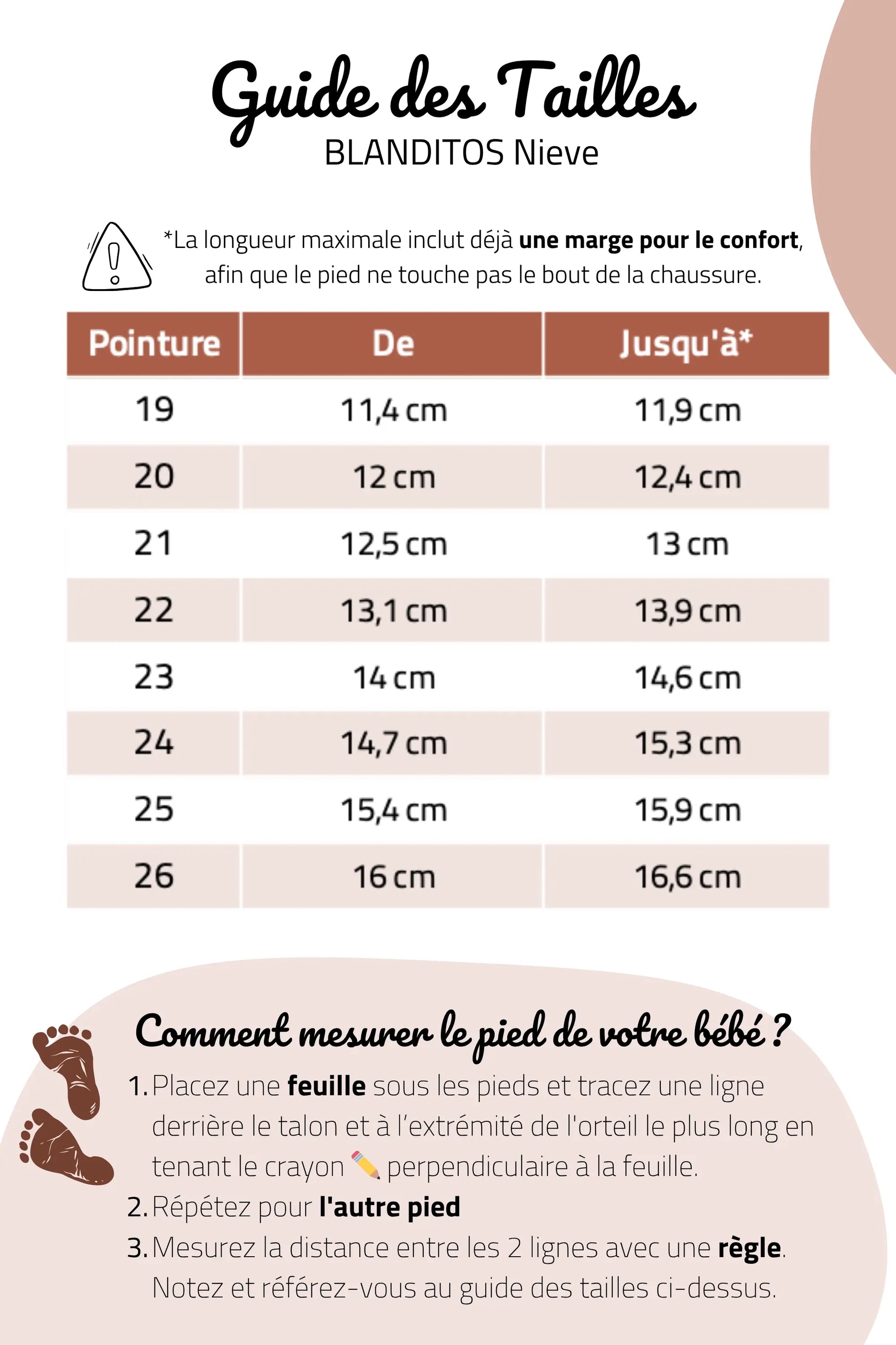 6. ✏️ Notez les mesures obtenues en cm pour chaque pied et référez-vous au guide des tailles.
