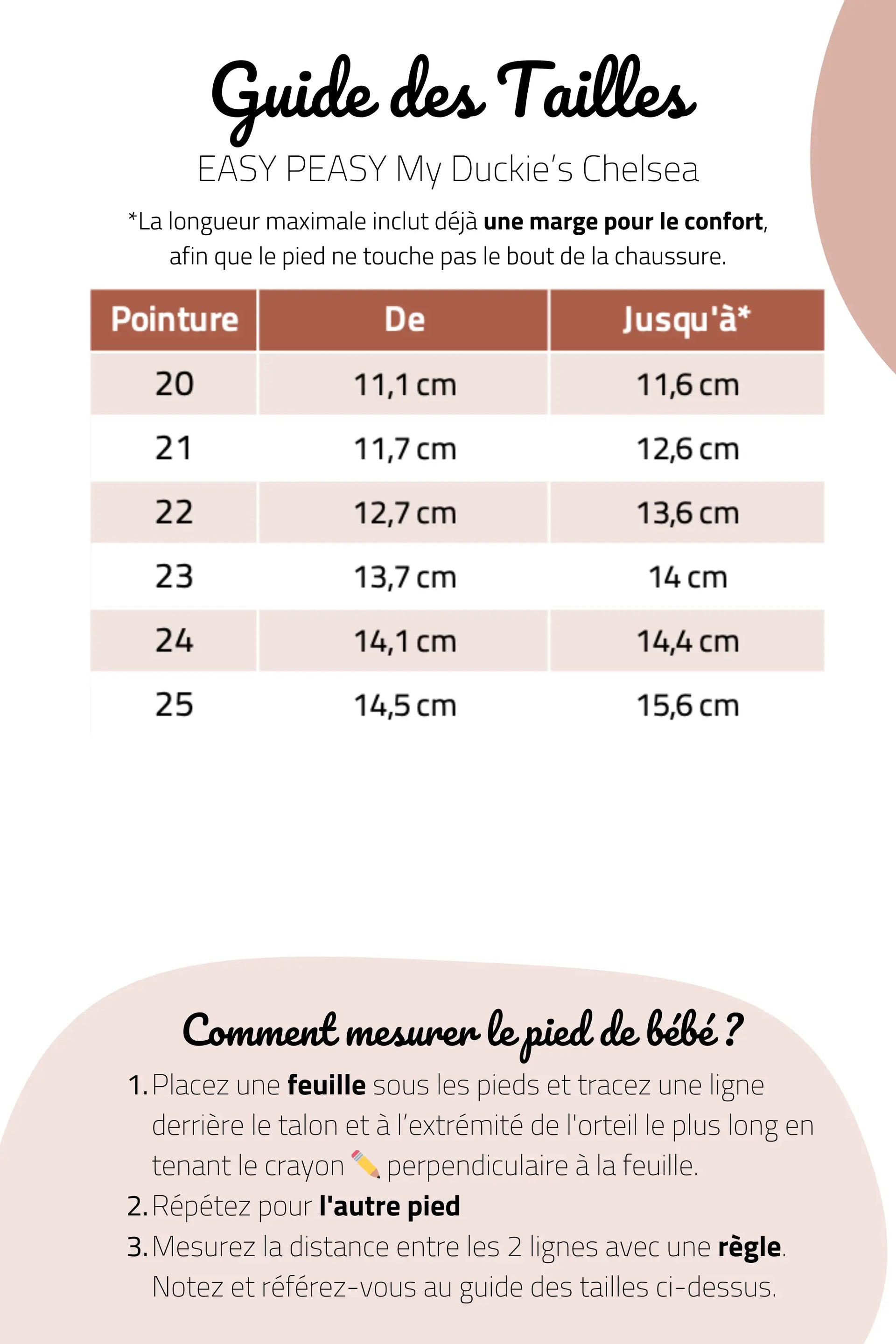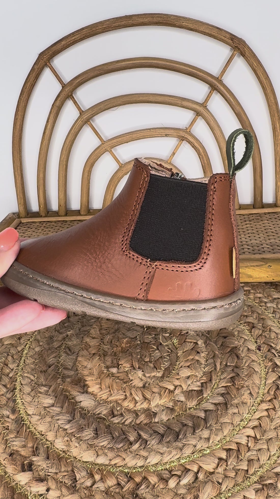 Les chaussures My Duckie's Chelsea Camel de Easy Peasy ont été conçues pour respecter les petits pieds de votre enfant. Elles sont barefoot donc offrent un espace pour les orteils plus large, une semelle plate, pas de contrefort sur l'arrière et une grande souplesse dans toutes les directions.